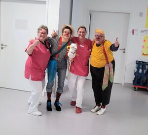 ein ganz herzlichen Dank für diesen tollen Schnappschuss mit Frix und Günter und für die warmen Worte, dir ihr uns geschickt habt! Auch wir sind sehr froh, dass wir so regelmäßig zu euch in die Kinderklinik Bremerhaven kommen dürfen und an eurer Seite Freude, Optimismus und Frohsinn in den Klinikalltag der kleinen Patienten bringen können. Bleibt wie ihr seid, ihr seid bewundernswerte Menschen! 🙂